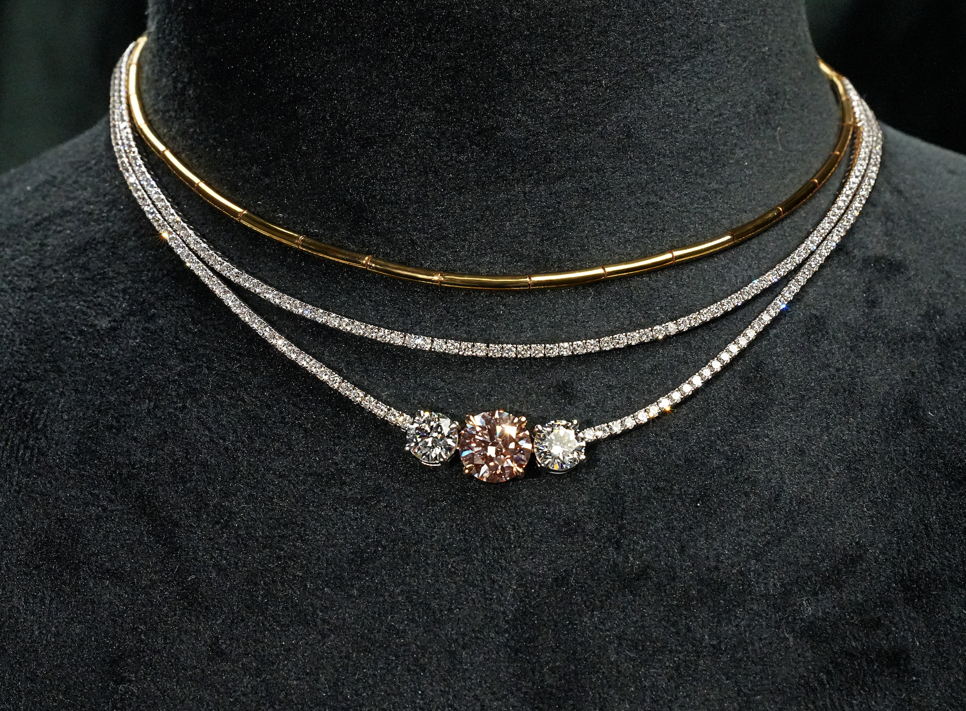 Lab Grown Pink Round Solitaire/ Two Round Solitaire - 3.02ct/ 2.07ct