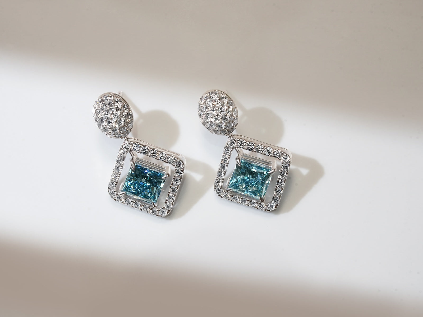 Lab Grown Blue Princess Solitaire - 3.03ct each