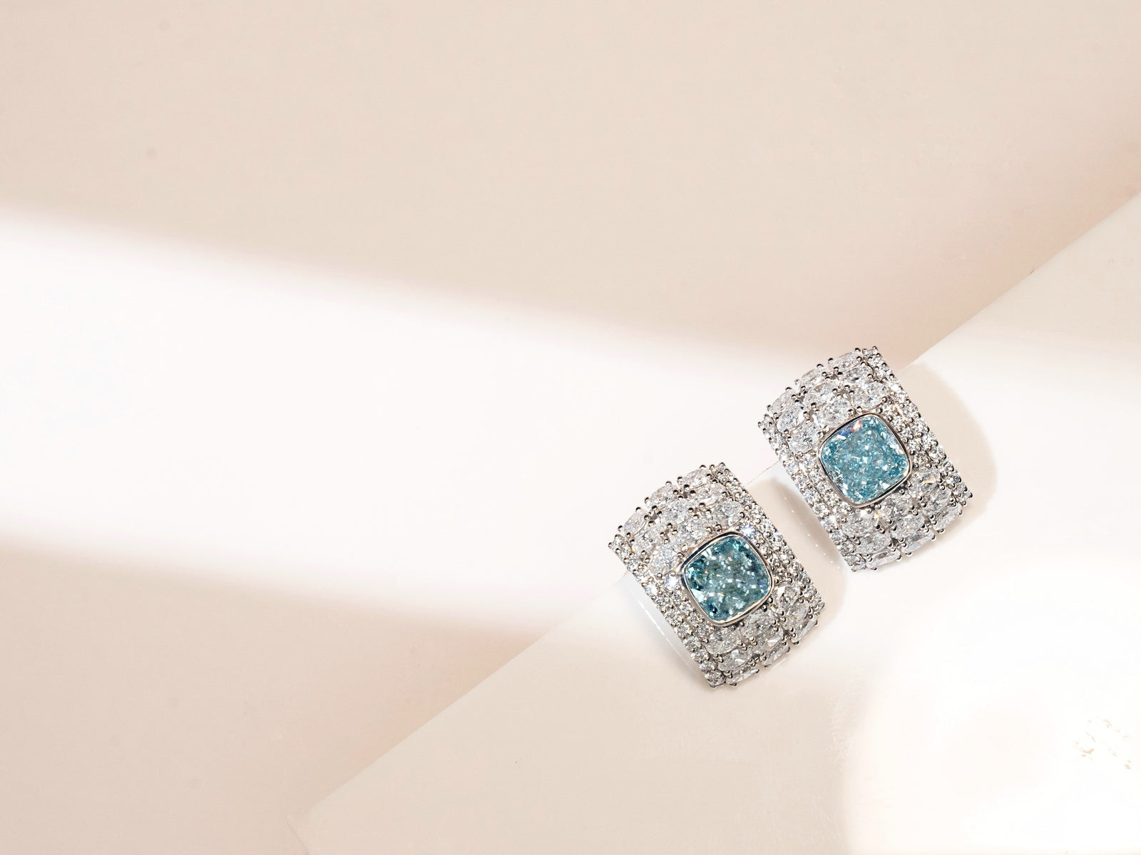 Lab Grown Blue Cushions Solitaire - 3.12ct each